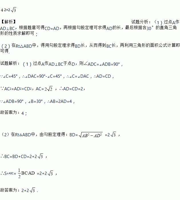 已知:如图,在△ABC中,∠B=30°,∠C=45°,AC=2,