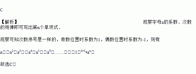 按一定规律排列的单项式:a,﹣a2,a3,﹣a4,a5,﹣a6,……,第n个单项式是( )