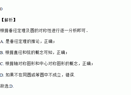 A. 垂直平分弦的直线必经过圆心 B. 直径是弦 C. 圆既是中心对称图形又是轴对称图形 D. 等弦对等弧
