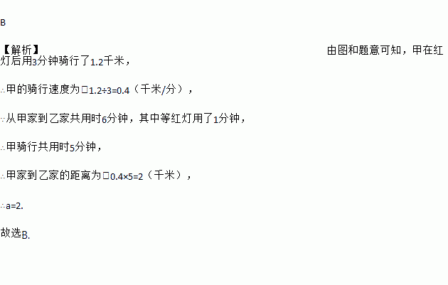 甲骑车到乙家研讨数学问题,中途因等候红灯停止了一分钟,之后又骑行了