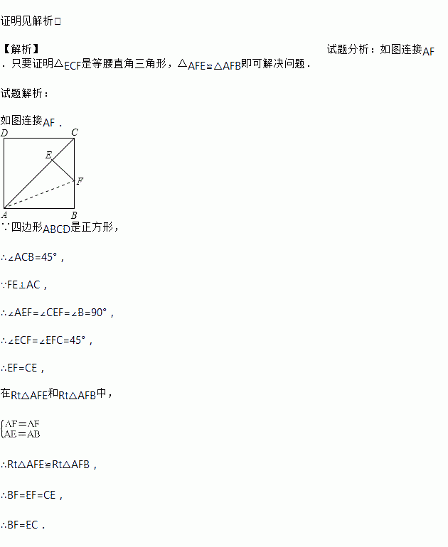 已知:如图,E是正方形ABCD对角线AC上一点,且AE=AB,EF⊥AC,交BC于F.