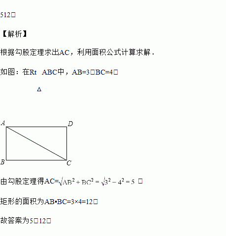 矩形ABCD中,AB=3,BC=4,则AC=_____,矩形的面积为_____.