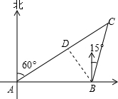 分析:过点B作BD⊥AC于点D,在Rt△ABD中,∠CAB=30°,即可利用三角函数求得BD,再在Rt△BDC中利用三角函数即可求得BC的长.