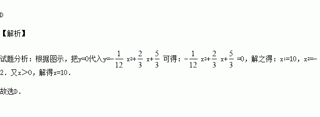 如图,铅球运动员掷铅球的高度y(m)与水平距离x(m)之间的函数关系式是 ,则该运动员此次掷铅球的成绩是( )