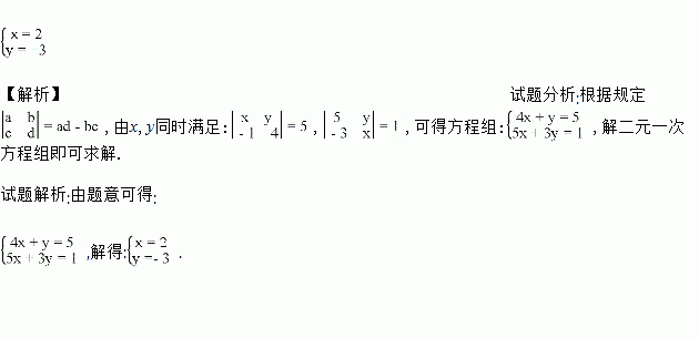 对于任意有理数a,b,c,d,我们规定,已知x,y同时满足,,,求x,y的值.