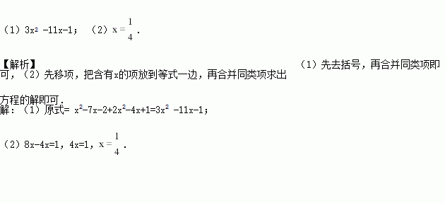 (1)( x2-7x-2)-(-2x2+4x-1) (2)8x=4x+1(解方程)