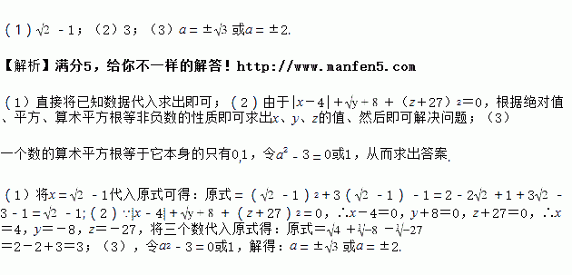 (2)若|x-4|++(z+27)2=0,求+-的值;