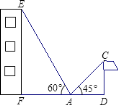 如图,在一次课外数学实践活动中,小明站在操场的处,他的两侧分别是旗杆和一幢教学楼,点、、在同一直线上,从处测得旗杆顶部和教学楼顶部的仰角分别为和,已知,,求旗杆高.(结果精确到,参考数据:,)