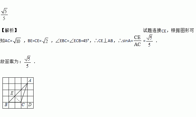 如图,△ABC的顶点是正方形网格的格点,则sinA的值为__________.