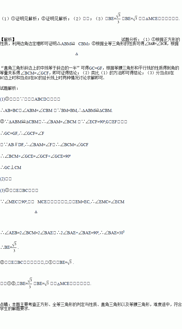 (1)如图1,当点E在BC边上时.求证:①△ABM≌△CBM;②CG⊥CM.