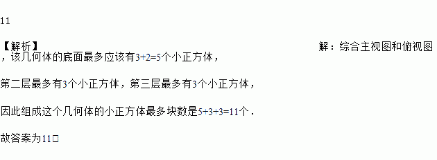 由一些大小相同的小正方体搭成的几何体的主视图和俯视图,如图所示,则搭成该几何体的小正方体最多是______个.