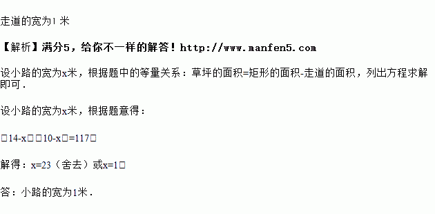 如图,在长米、宽米的矩形场地上,建有三条同样宽的小路,其中一条与平行,另两条与平行,其余的部分为草坪,已知草坪的总面积为平方米,求小路的宽度.