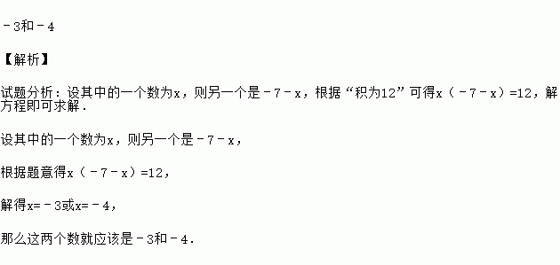 若两数和为-7,积为12,则这两个数是 .