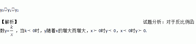 若A(﹣3,y1),B(﹣2,y2),C(1,y3)三点都在y=的图象上,则yl,y2,y3的大小关系是_____.(用“<”号填空)