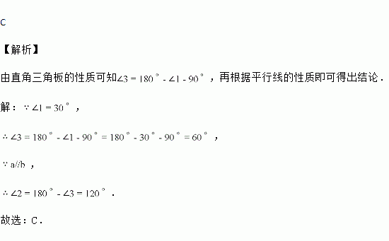 如图,已知,小明把三角板的直角顶点放在直线b上若,则的度数为