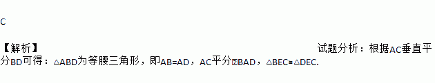 A. AB=AD B. AC平分∠BCD C. AB=BD D. △BEC≌△DEC