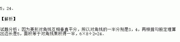 如果菱形的两条对角线的长分别为6cm和8cm,则此菱形的边长是 cm,面积是 cm2.