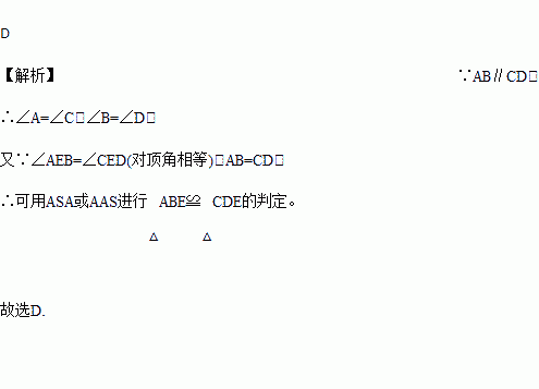 如图,AB∥CD,且AB=CD,则△ABE≌△CDE的根据是( )