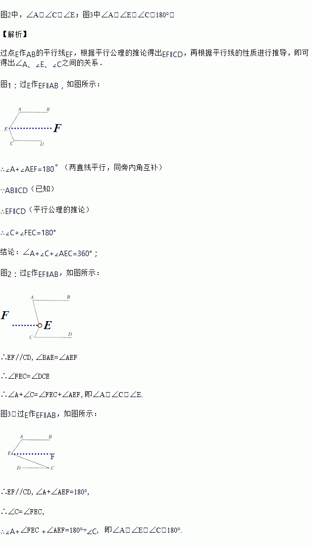 如图1,你能得出∠A+∠E+∠C=360°吗?