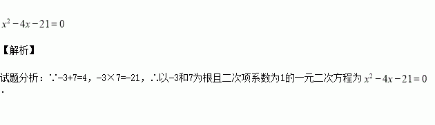 以-3和7为根且二次项系数为1的一元二次方程是 .