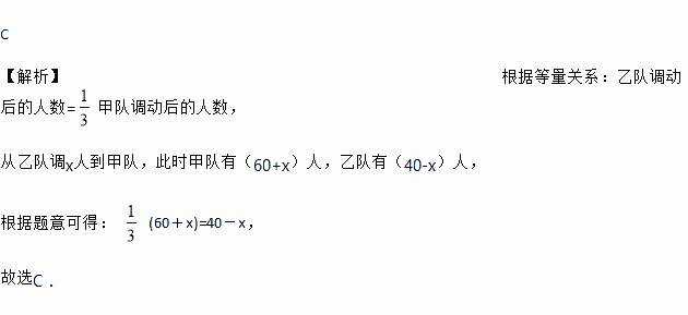 ,应从乙队调多少人去甲队?如果设应从乙队调x人到甲队,列出的方程正确的是( )