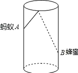 如图,圆柱形容器高为18cm,底面周长为24cm,在杯内壁离杯底4cm的点B处有乙滴蜂蜜,此时一只蚂蚁正好在杯外壁,离杯上沿2cm与蜂蜜相对的点A处,则蚂蚁从外币A处到达内壁B处的最短距离为 .
