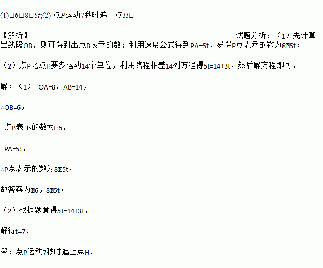 如图,数轴上点A表示的数为8,B是数轴上一点,且AB=14,动点P从点A出发,以每秒5个单位长度的速度沿数轴向左匀速运动,设运动时间为t(t>0)秒.