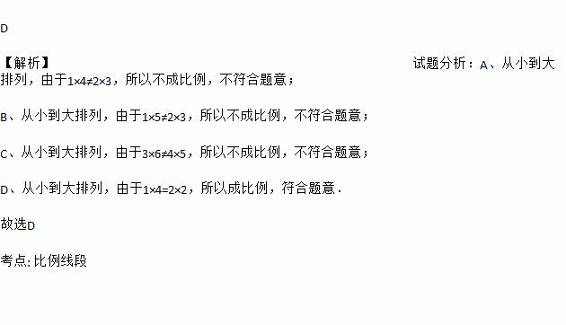 下列各组中的四条线段成比例的是( )