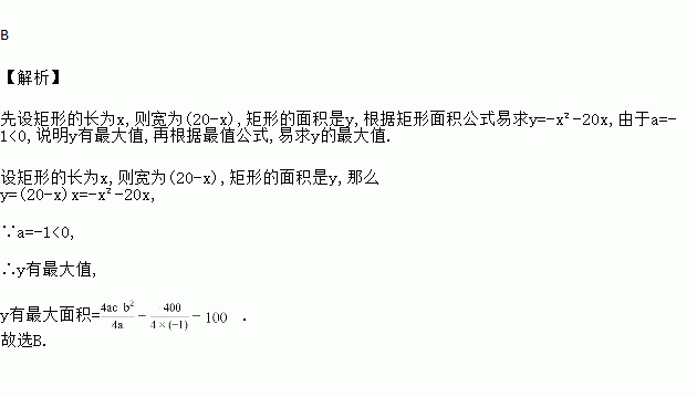 A. 40cm² B. 100cm² C. 400cm² D. 该矩形的面积没有最大值