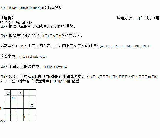 (3)若这只甲虫从A处去甲虫P处的行走路线依次为(+2,+2),(+1,﹣1),(﹣2,+3),(﹣1,﹣2),请在图中标出依次行走停点E、F、M、N的位置.
