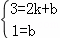 解答: 解∵一次函数y=kx+b过(2,3),(0,1)点,