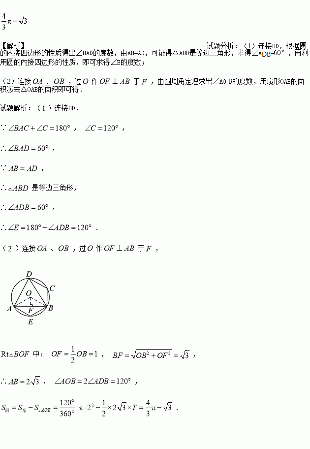 如图,在⊙的内接四边形中, , . 是上一点(点不与点、重合).