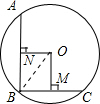 ∵OM⊥BC,ON⊥AB,AB=16cm,BC=12cm,∴OM=8cm,ON=6cm,