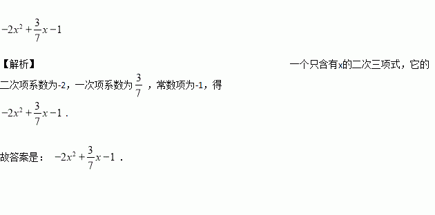 一个只含有字母x的二次三项式,它的二次项系数为-2,一次项系数为,常数项为-1,则这个二次三项式为________.