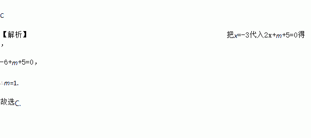 若 x=-3 是关于x的一元一次方程2x+m+5=0的解,则m的值为( )