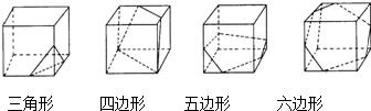解:截面的形状可能是三角形、四边形、五边形、六边形,如图所示.
