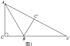 (3)将Rt△A′BC′由图①的位置按顺时针方向旋转,当A、C′、A′三点在一条直线上时,请画出示意图,并写出旋转角的度数.