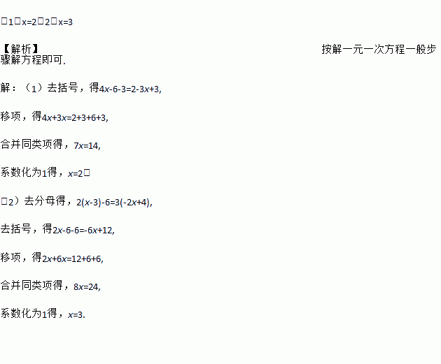 (1)2(2x﹣3)﹣3 = 2﹣3(x﹣1)