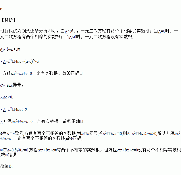 ①b=a+c时,方程ax2+bx+c=0一定有实数根;