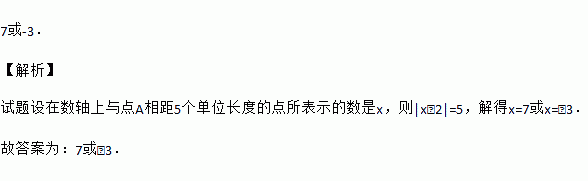 若点A、点B在数轴上,点A对应的数为2,点B与点A相距5个单位长度, 则点B所表示的数是______
