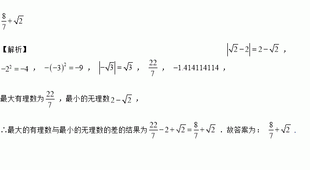 下列一组数: , , , , ,在这些数中最大的有理数与最小的无理数的差的结果是__________.
