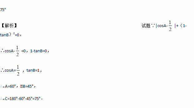 在△ABC中,若|cosA-|+(1-tanB)2=0,则∠C的度数是________