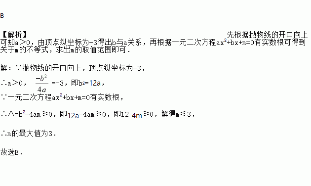 二次函数y=ax2+bx的图象如图,若一元二次方程ax2+bx+m=0有实数根,则m的最大值为( )