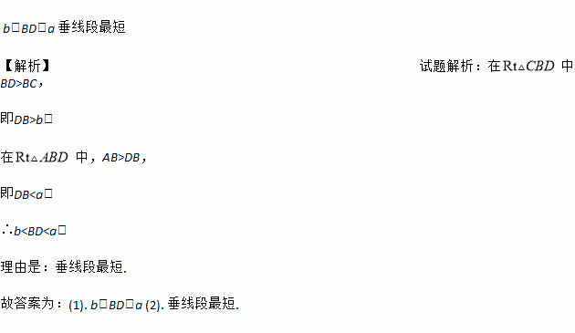 如图所示,AD⊥BD,BC⊥CD,AB=a,BC=b,则BD的范围是__________,理由是____________________.