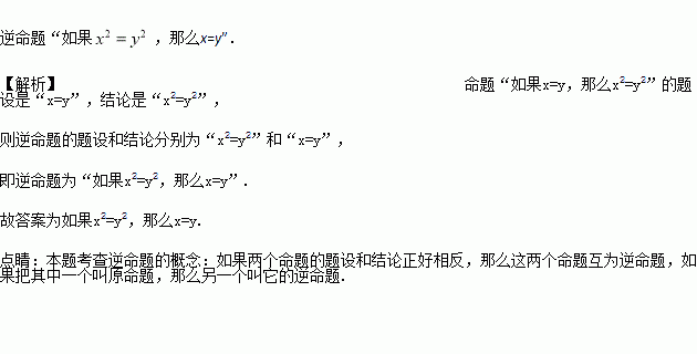 命题“如果x=y,那么”的逆命题是 ____________________________________________.