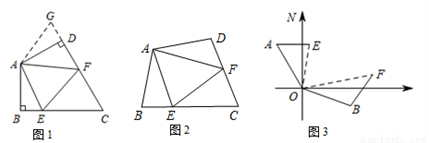 如图1,在四边形ABCD中,AB=AD,∠BAD=120°,∠B=∠ADC=90°,E、F分别是BC,CD上的点,且∠EAF=60°,探究图中线段BE,EF,FD之间的数量关系.