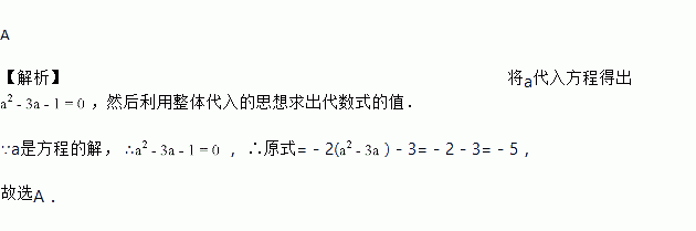 已知a是方程x2﹣3x﹣1=0的一个根,则代数式﹣2a2+6a﹣3的值是( )