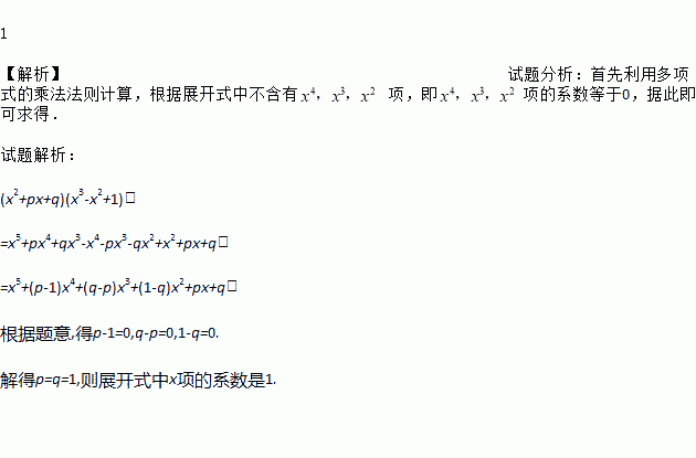 已知(x2+px+q)(x3-x2+1)的展开式中不含x4,x3,x2的项,求展开式中x项的系数.