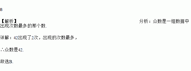 某班7名女生的体重(单位:kg)分别是35、37、38、40、42、42、74,这组数据的众数是( )