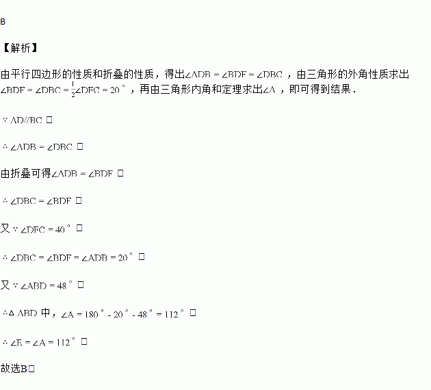 如图,将?ABCD沿对角线BD折叠,使点A落在点E处,交BC于点F,若,,则为